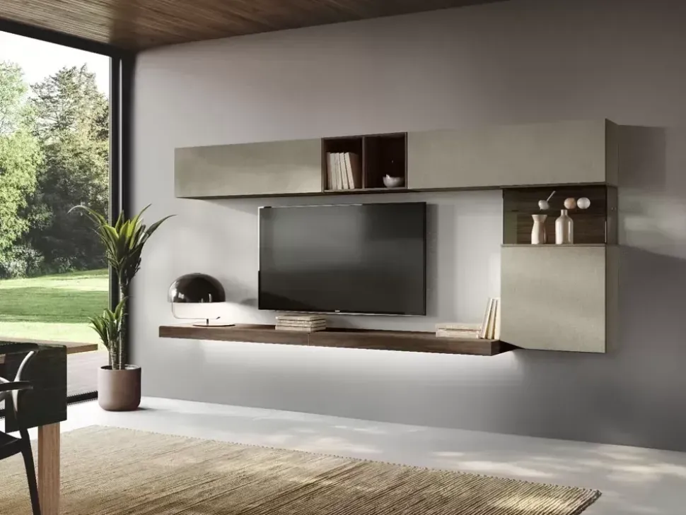 Dai forma al tuo soggiorno con una ampio composizione completa di tutto, in grado di garantirti tutta la funzionalità di un mobile sospeso.