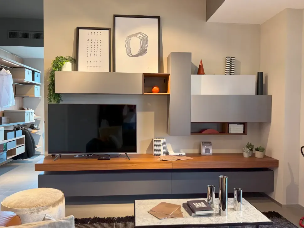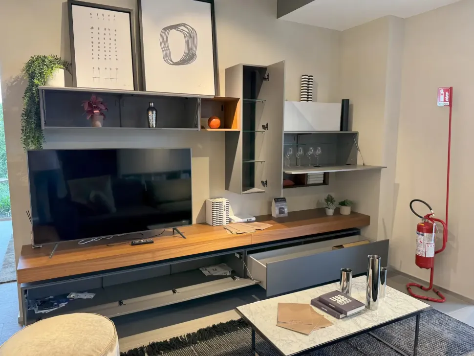 I ripiani in vetro non solo aggiungono leggerezza visiva, ma sono anche pratici per organizzare libri o accessori. Questo soggiorno componibile non è solo un elemento d’arredo, ma una vera esperienza estetica che invita a riscoprire la bellezza del vivere quotidiano. Attualmente disponibile in offerta per rinnovo expo, rappresenta un’opportunità imperdibile per chi cerca qualità e stile senza compromessi.