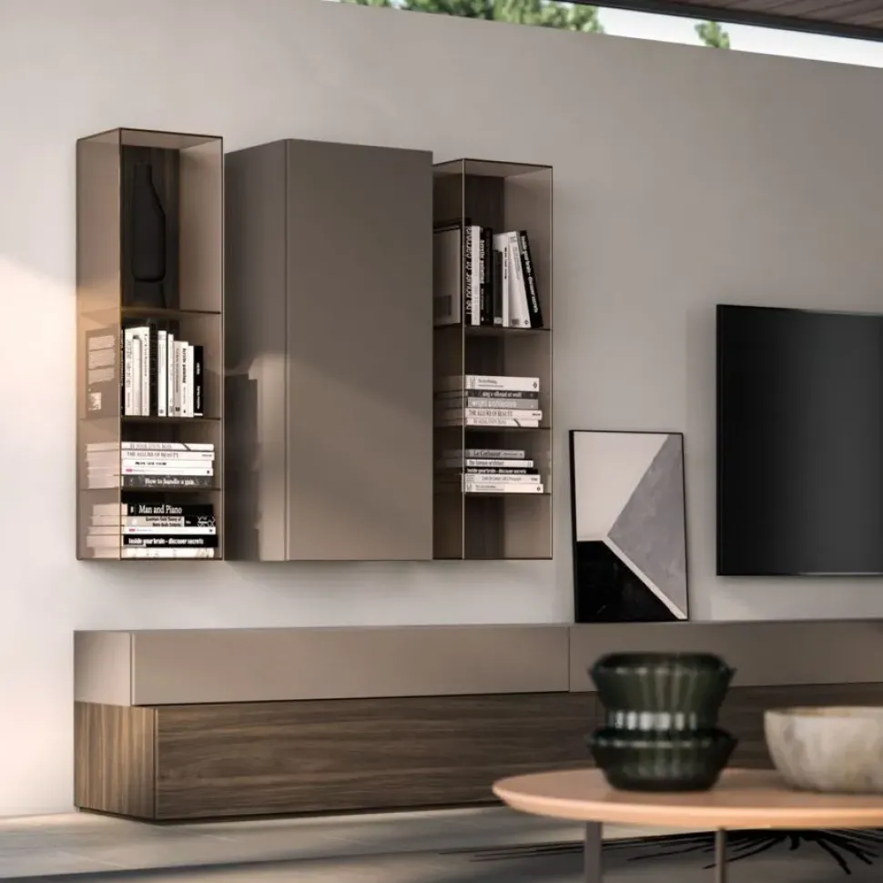 Dai forma al tuo soggiorno con una spazioso composizione completa di tutto, in grado di garantirti tutta la funzionalità di un mobile a terra.
