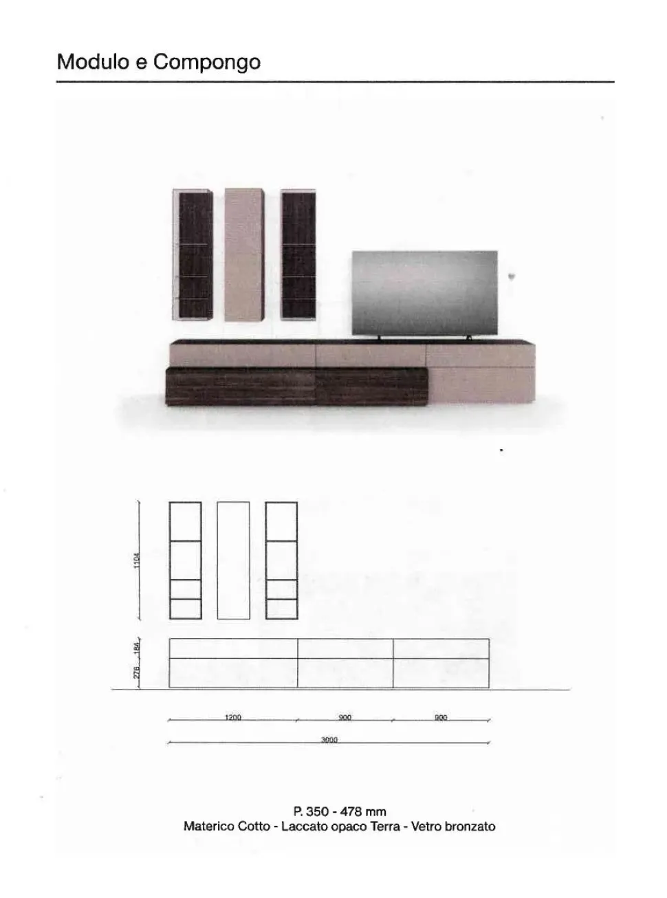 Le venature del legno aggiungono una naturale armonia, interpretata con spirito contemporaneo. Pensili Vidro in vetro bronzato e materico Cotto, pensile Compongo in laccato opaco Terra. Basi a terra Compongo con cassetti in materico Noce, basi in appoggio Compongo con cassetti in laccato opaco Terra. Dimensioni composizione: Larghezza 300cm, Altezza 155cm, Profondità 48cm. Spedizione compresa nel prezzo in tutta Italia 40-50 giorni lavorativi. La composizione ha un prezzo base di euro 3.700,00. Personalizzando con materiali legno e laccati come in foto l’offerta è di euro 3.800,00. Per maggiori informazioni e preventivi contattaci via mail.