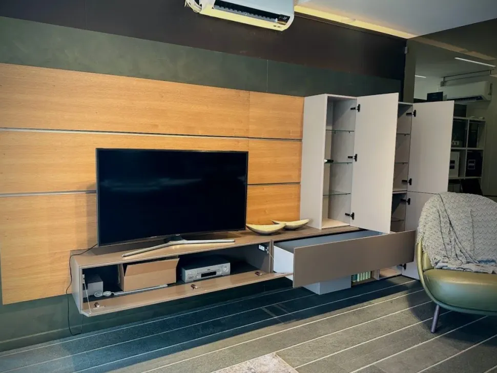 Arreda il tuo soggiorno con una tra le nostre composizioni di mobili ed elementi accessori senza maniglia: il soggiorno completo People ti aspetta a prezzo scontato.