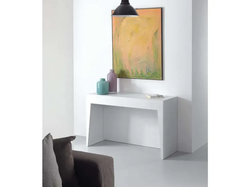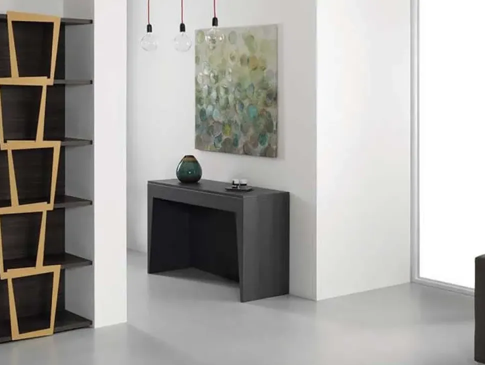 - È molto importante valutare anche le finiture con cui i complementi sono stati costruiti prima di sceglierne e acquistarne uno, valutando una scelta praticamente infinita di finiture disponibili in commercio; per il modello di Consolle allungabile in melaminico qui visibile il marchio ha selezionato un materiale gradevole e resistente, appropriato per valorizzare le stanze assicurandoti anche di resistere in anni al prolungato utilizzo.