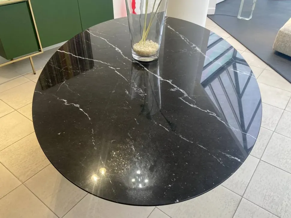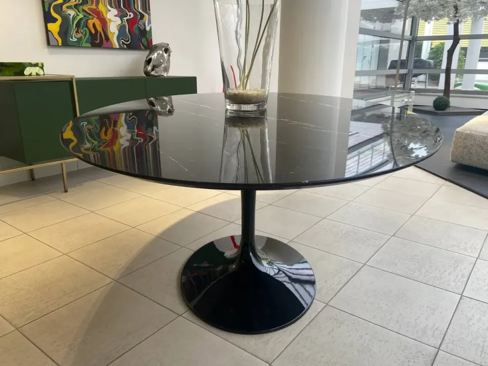 Top in marmo Nero Marquinia e base in fusione di alluminio laccato lucido col. nero