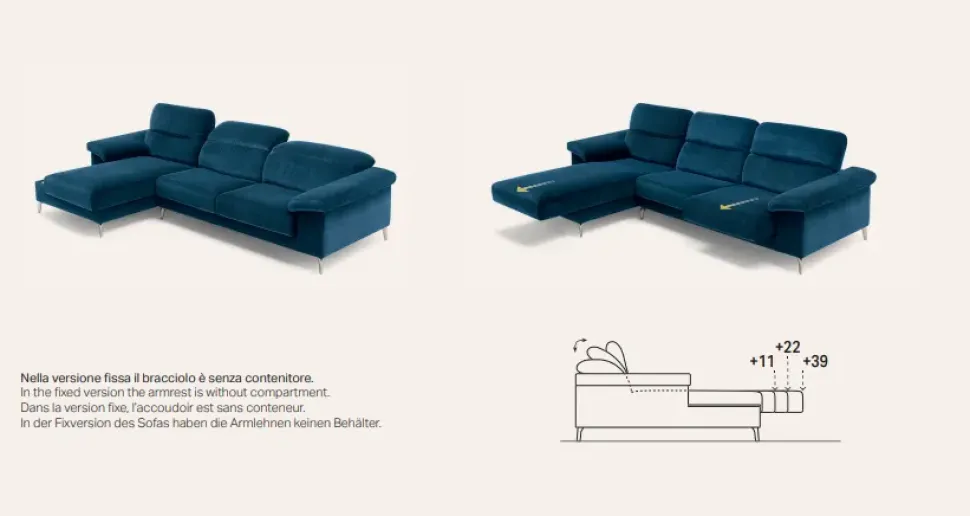 - Caratteristiche del divano: Rivestimento tessuto, Tipologia divani letto con penisola, Numero posti 4 posti, Tipologia seduta con seduta estraibile, Stile moderni, Spese Trasporto : trasporto incluso nazionale (no isole), Lunghezza da 251 a 275 cm.