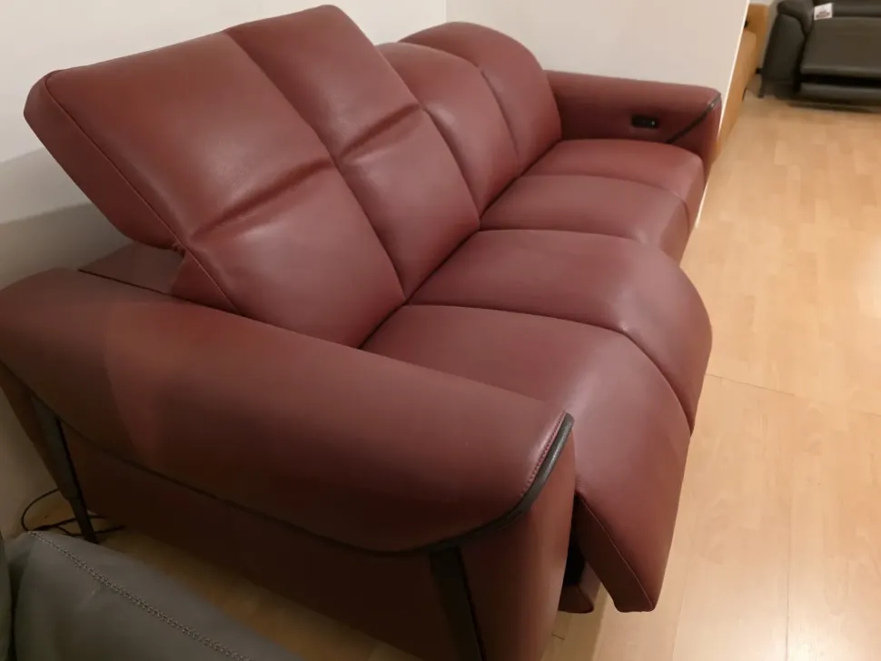 Comfort moderno e funzionalità si incontrano in questo divano 2 posti in vera pelle color bordeaux, pensato per regalarti momenti di puro relax. Grazie al meccanismo elettrico reclinabile, puoi regolare l apertura della seduta in totale autonomia, con un semplice gesto.