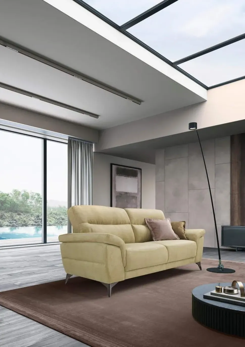 - Gli arredi, tra cui pure gli imbottiti, non devono mai risultare ingombranti, soprattutto per quanto riguarda lo spazio che occupano all’interno dei locali; non per altro è tanto importante valutare con attenzione anche le loro misure: il modello di Divano presente in foto fa parte della collezione di imbotti del brand di lunghezza che varia da 201 a 225 cm ed è dunque ideale per un ambiente di svariate volumetrie.