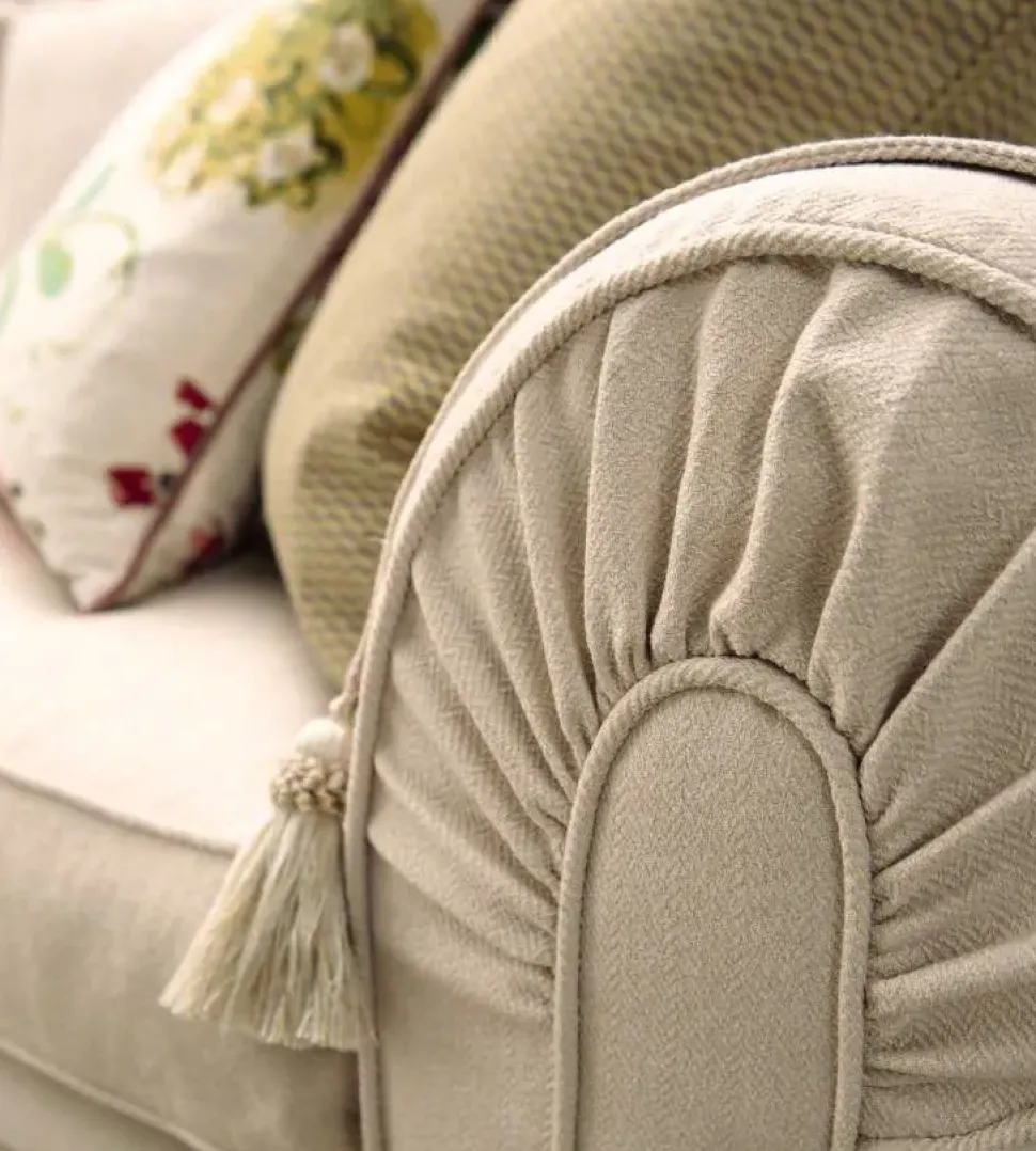 - In un soggiorno che si rispetti, anche gli imbottiti devono seguire una certa uniformità di colore e di stile: il modello qui visibile è l’ideale per completare alla perfezione un ambiente in stile classico; linee ben studiate e materiali di qualità resistenti negli anni lo rendono una soluzione arredativa di gran classe.