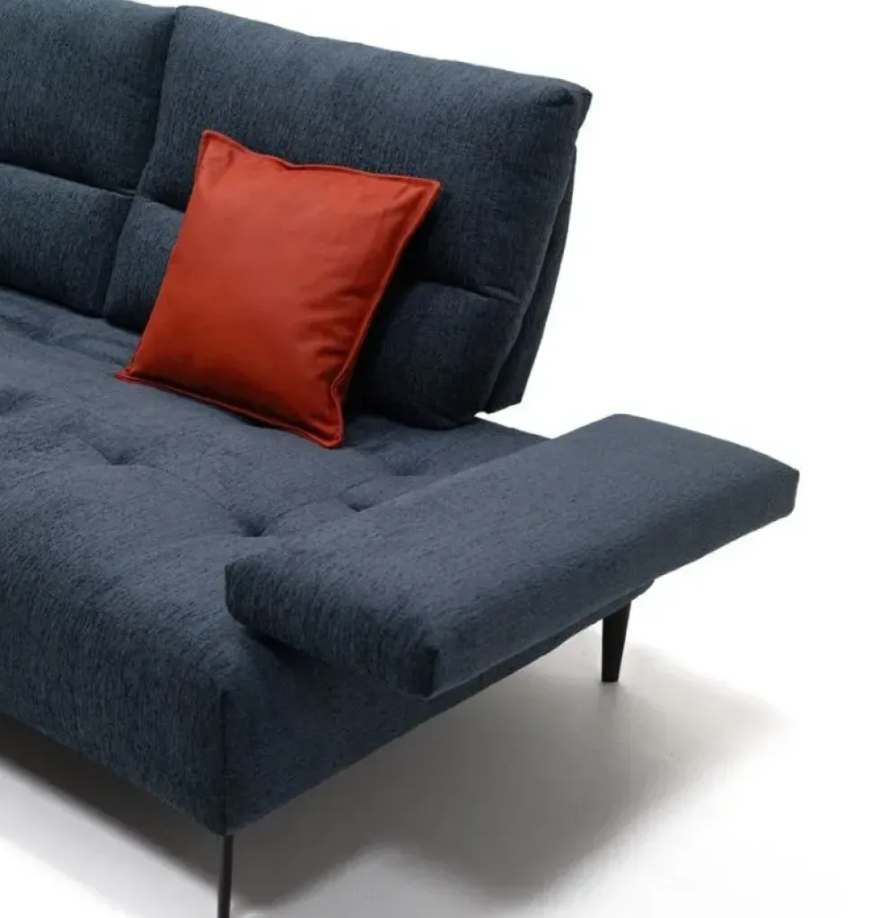 I cuscini morbidi e avvolgenti , insieme alle spalliere basculanti con meccanismo a compasso , consentono di regolare la profondità della seduta per un comfort su misura. Grazie allo stesso sistema, anche la larghezza della seduta può essere ampliata con un