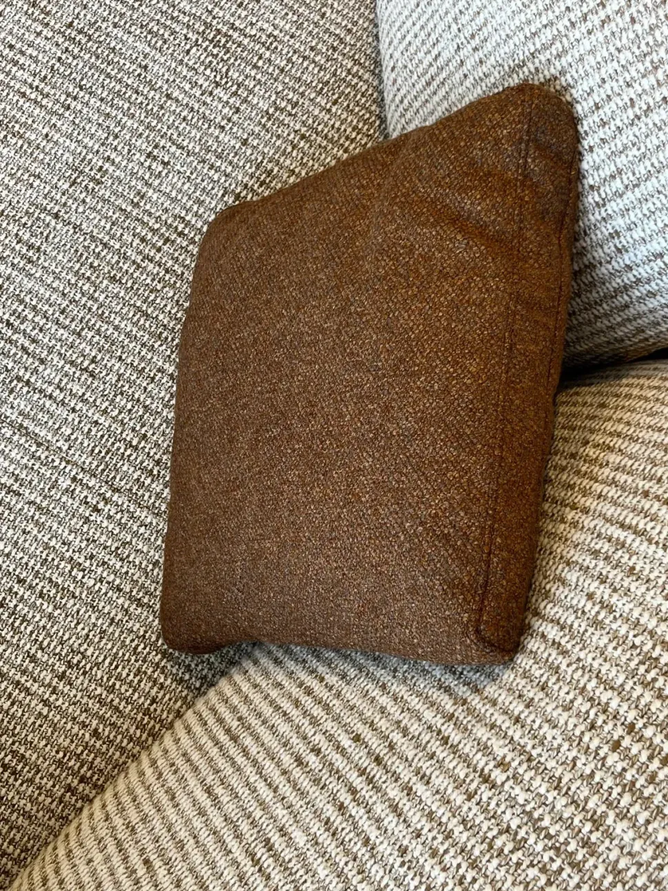 Il rivestimento può essere in tessuto o pelle, anche combinati tra loro per ottenere un gioco di contrasti materici o sottolineare l armonia tonale tra scocca e cuscini. I cuscini schienale, di forma rettangolare e liberamente posizionabili, offrono versatilità e comfort personalizzato, per leggere, conversare o rilassarsi completamente.