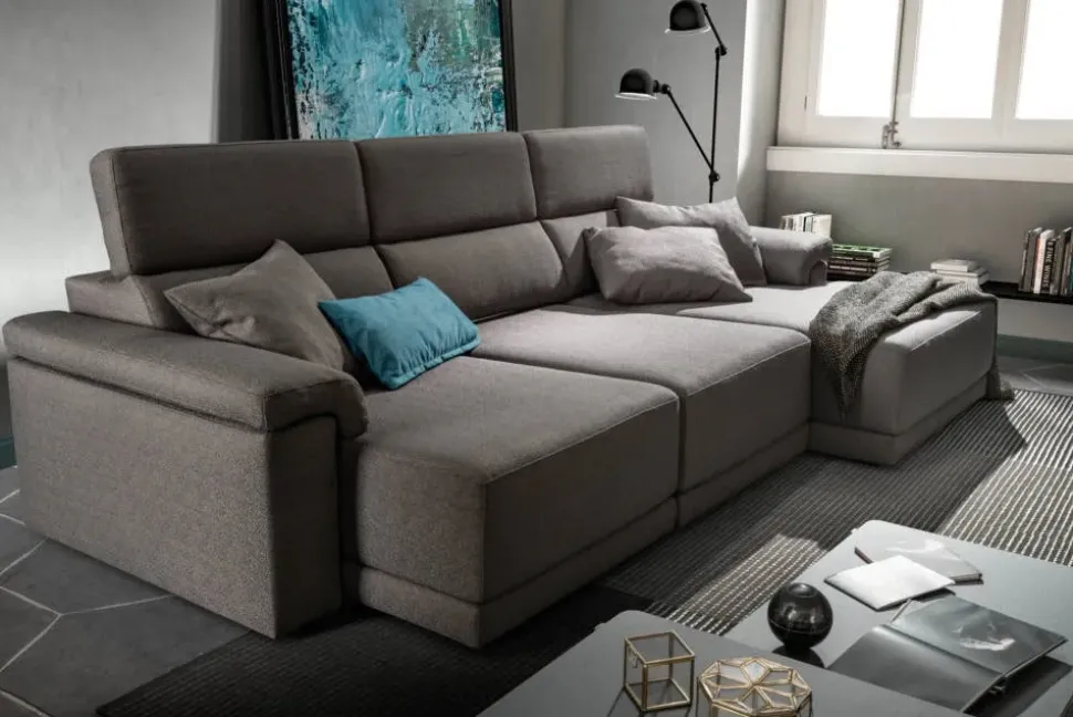 - Gli spazi indoor devono essere conformi alle richieste di chi li vive e gli arredi, tra cui pure gli imbottiti, non devono mai essere d’ingombro; il modello qui presente fa parte della fascia di imbottiti di lunghezza che va da 276 a 300 cm, risultando così ideale per un luogo di svariate misure.