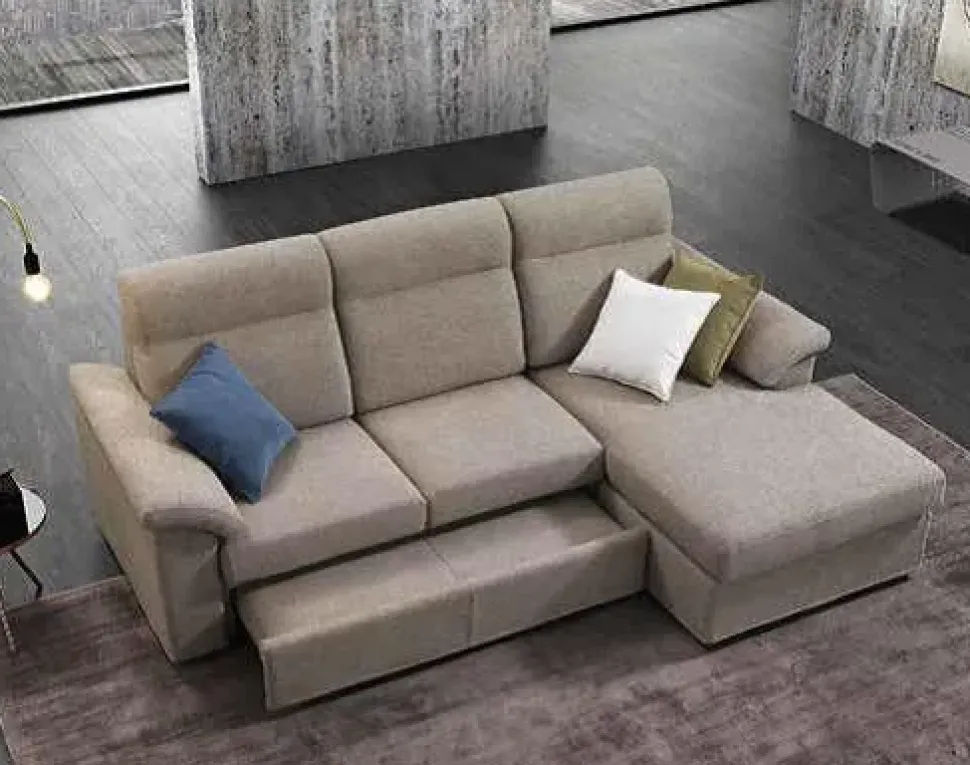 DIVANO CON PENISOLA MOD. LEO CM.242 X 160. ALTEZZA SCHIENALE 100 CM PER UN COMFORT UNICO. IL PRATICO POGGIAPIEDI/LETTO AUMENTA NOTEVOLMENTE LA SUPERFICIE DEL DIVANO REGALANDOTI UNA COMODITA’ SENZA CONFINI.