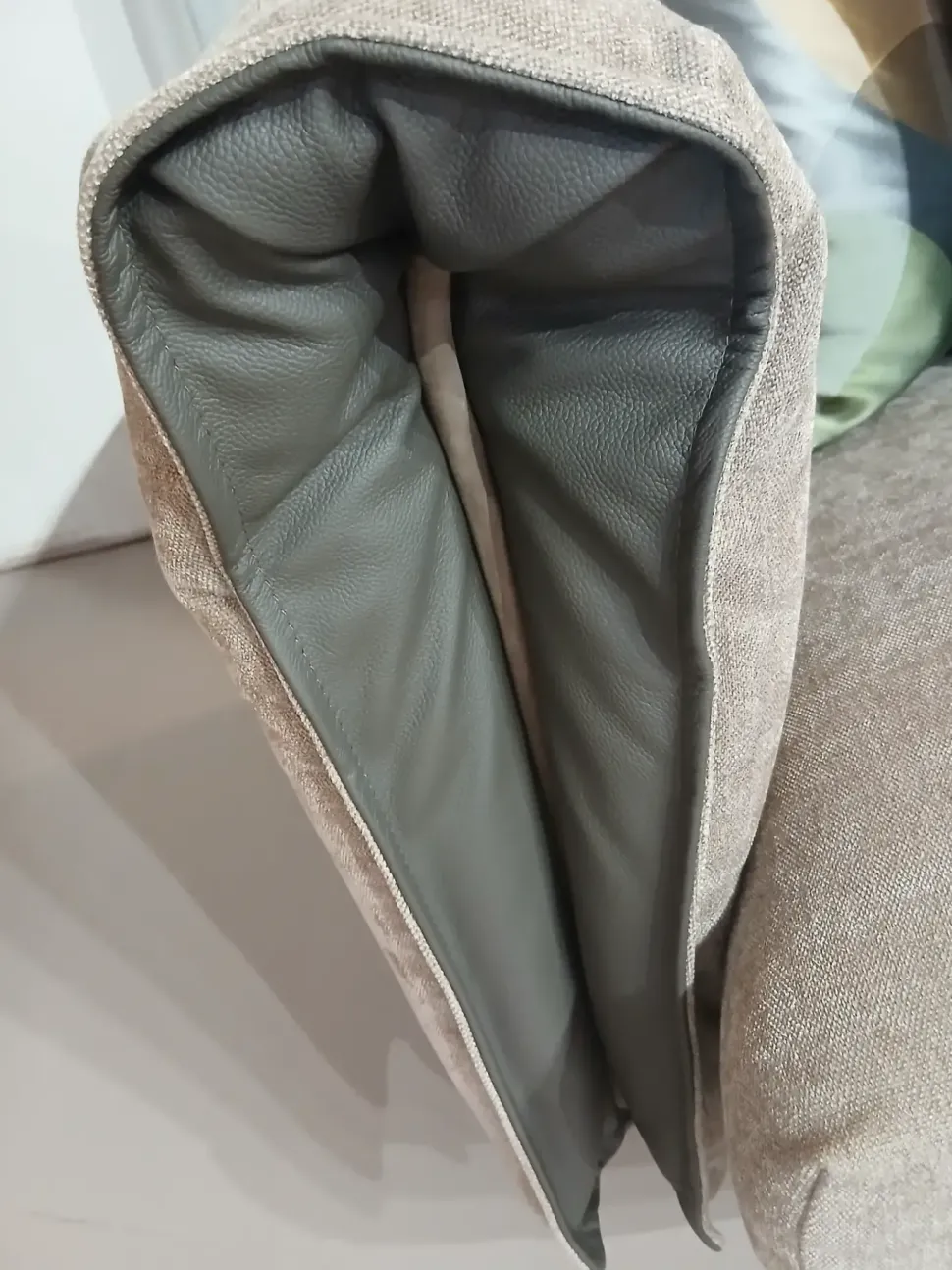 Rivestito in tessuto Art. Pastello 85% Poliestere e 15% Viscosa con interno bracciolo in Pelle , con piedi in metallo
