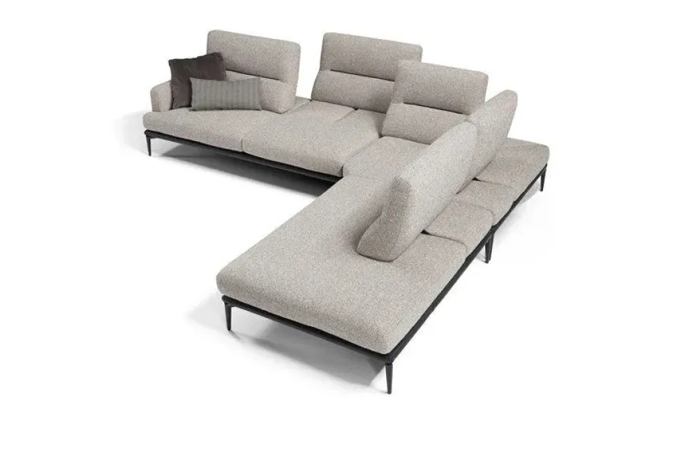 Divano grandi dimensioni mod. FENG di Egoitaliano , rivestimento tessuto/microfibra , tutti gli schienali con un comodo meccanismo che consentono di aumentare la seduta per un confort senza limite . L’ingombro della composizione presentata è di cm. 297×271 è comunque disponibile anche lineare e altre dimensioni angolari e con penisola . La base in vera pelle e i piedini alti e sottili donano un tocco di eleganza al modello.