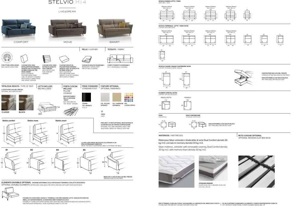 - Divano con materasso Memory H.14 cm, e portacuscini nello schienale.