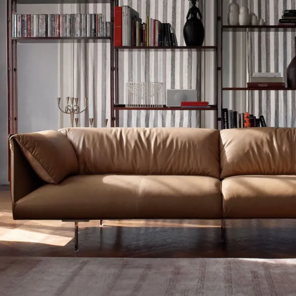 Struttura solida e soffice seduta per il modello di Divano Lineare pelle modello John-john di Poltrona Frau qui visibile. Un divano o una poltrona Poltrona Frau sono elementi che attrezzano in modo ottimale l’area del living, ambiente dedicato al relax e allo svago: il modello John-john qui presente diventerà protagonista del tuo living.