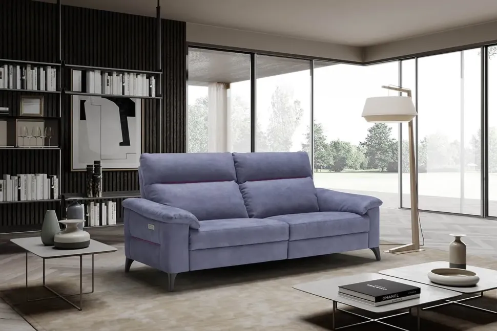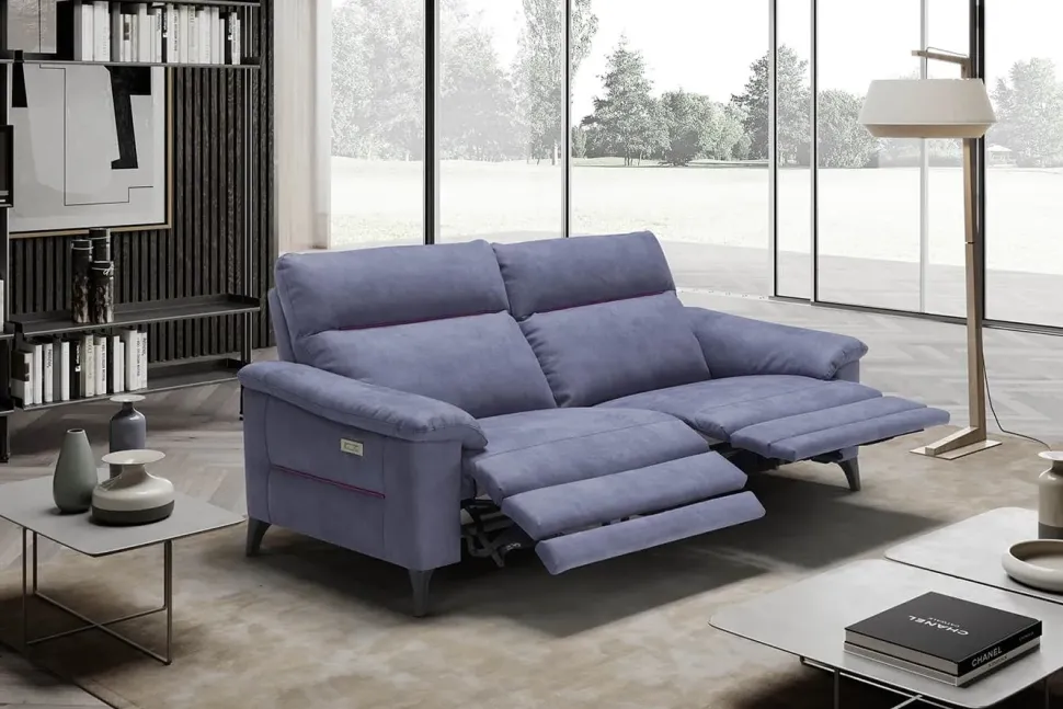 Divano Oliver rivestito in microfibra uno o due relax elettrici A RICHIESTA , dimensioni della foto 214x95x97.Piedi in metallo o legno in varie colorazioni .