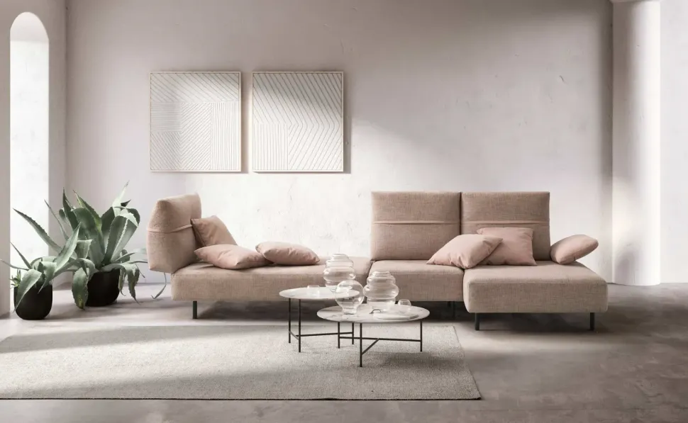 Divano mod. Pull , proposta con penisola , rivestimento tessuto/microfibra.