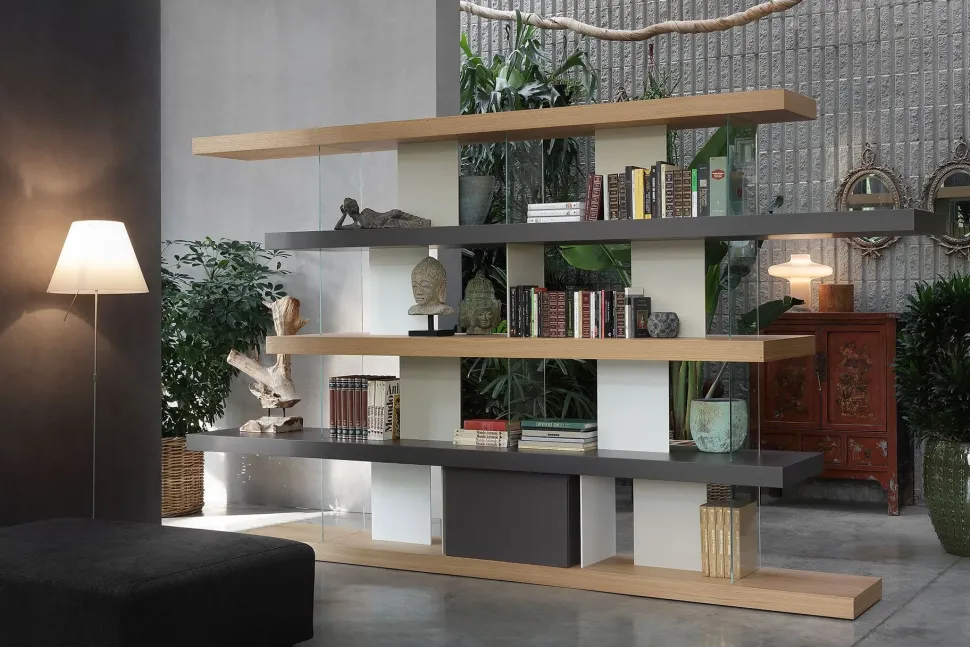 I mobili e complementi per la zona giorno consentono di customizzare lo spazio dando vita a particolari atmosfere: se vuoi un soggiorno design, la libreria in foto fa al caso tuo