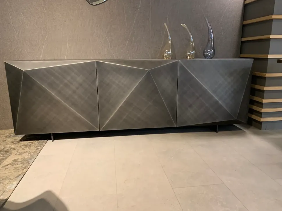 Kayak è una madia dal design eclettico e scultoreo pensata per arredare con eleganza ambienti residenziali e per completare raffinati progetti di contract interior design come lussuosi ristoranti di design. Che si tratti di zona pranzo o di ambienti living, questa credenza moderna dall anima poliedrica, mostra pregiati dettagli ed esclusive finiture. La finitura Brushed Grey regala caleidoscopici giochi di luce . Il suo cuore è fatto di setosi ripiani in cristallo trasparente, perfetti per riporre gli oggetti più cari.