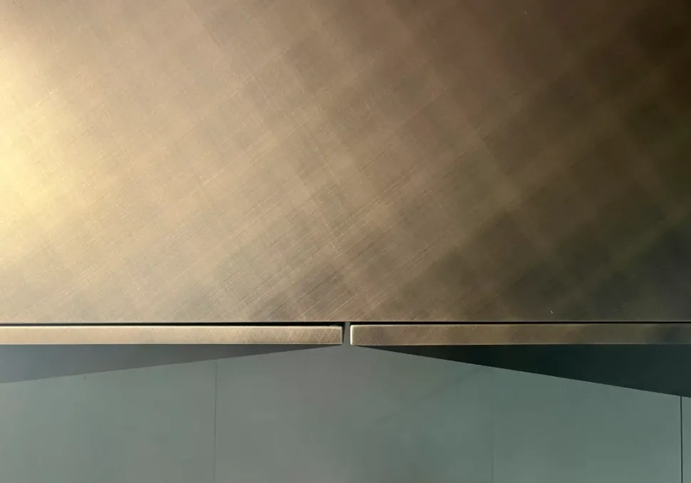 La madia Kayak di Cattelan Italia è un elemento d’arredo di forte impatto scultoreo, caratterizzato da superfici sfaccettate che catturano e riflettono la luce creando giochi geometrici dinamici.