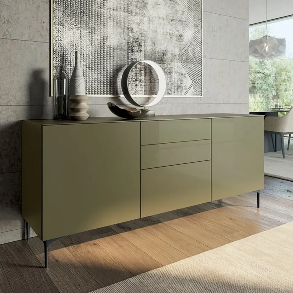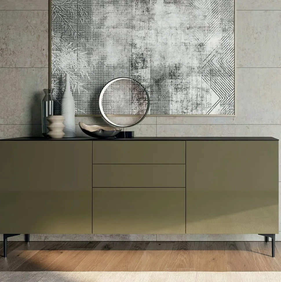 La madia modello Slim qui visibile saprà arricchire il tuo living mettendo in risalto il valore estetico del locale: questo mobile in laccato opaco ti permetterà di avere sempre a disposizione una superficie di appoggio plurifunzionale, esaltando allo stesso tempo lo stile moderno del living.
