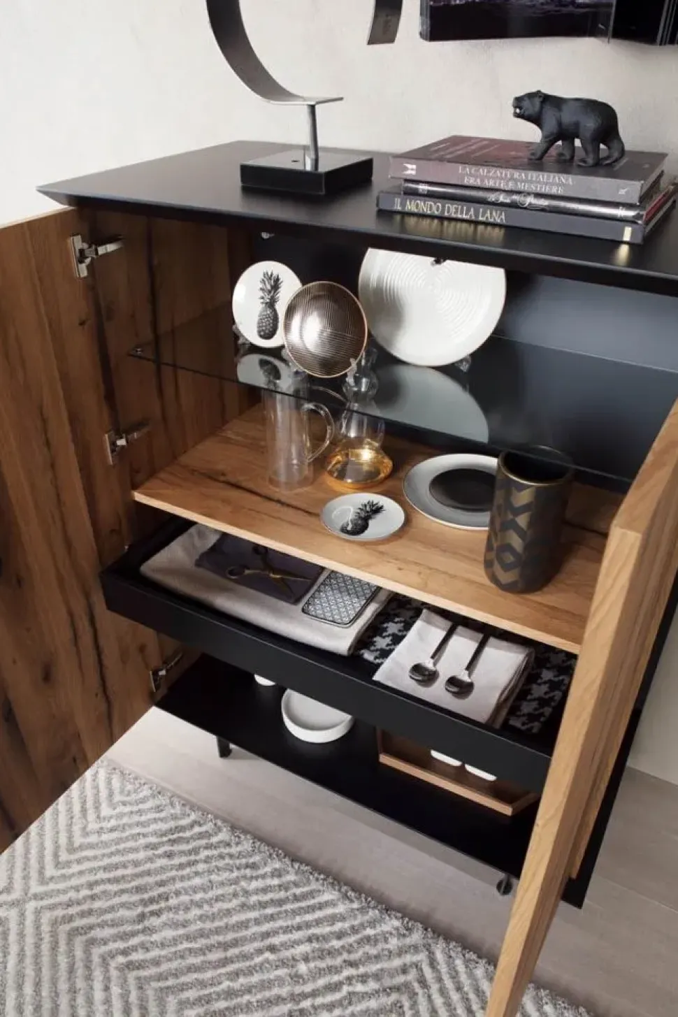 - La madia Brera nell’immagine fa parte della nostra linea di mobili e oggetti accessori senza maniglia.