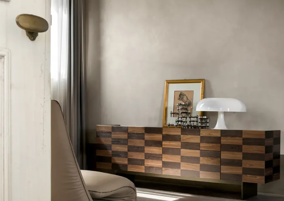 Le madie e i mobili per il living, come il modello Colosseo visibile in foto, sono fondamentali sia esteticamente che per quanto concerne la funzionalità: potrai riporci oggetti, oggetti d’uso quotidiano o prettamente decorativo. La madia in legno nell’immagine unisce le doti di praticità e design dell’ambiente dando vita a un concept d’arredo moderno.