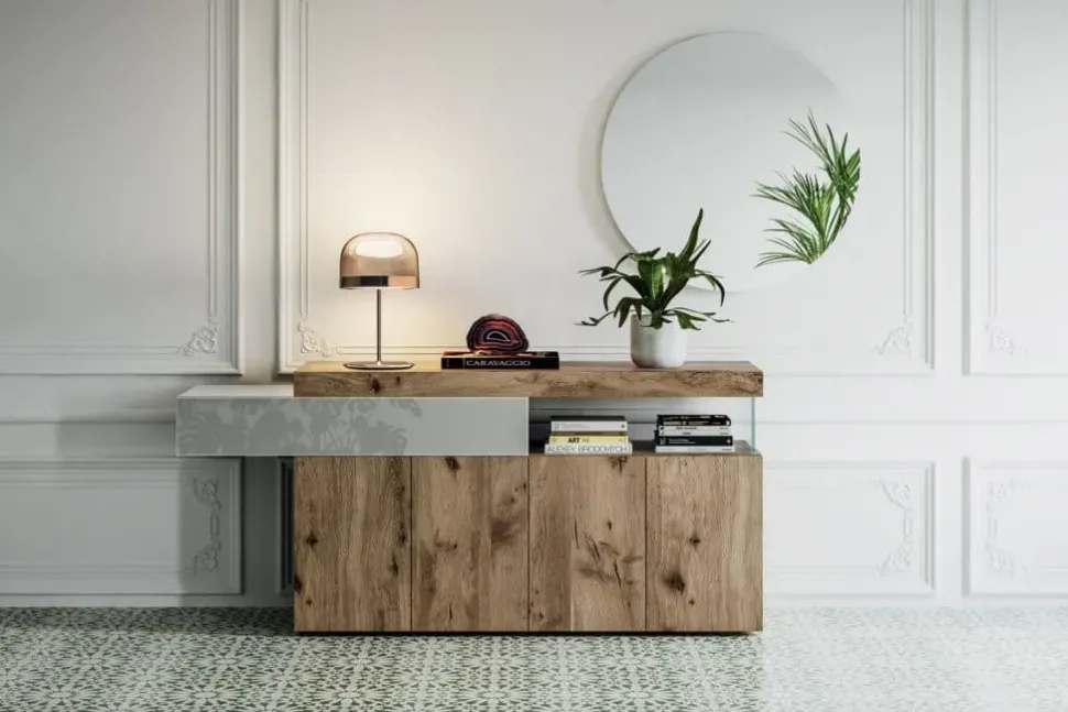 Con un mobile a terra come la madia in foto potrai arricchire lo spazio rendendolo pratico e dinamico.