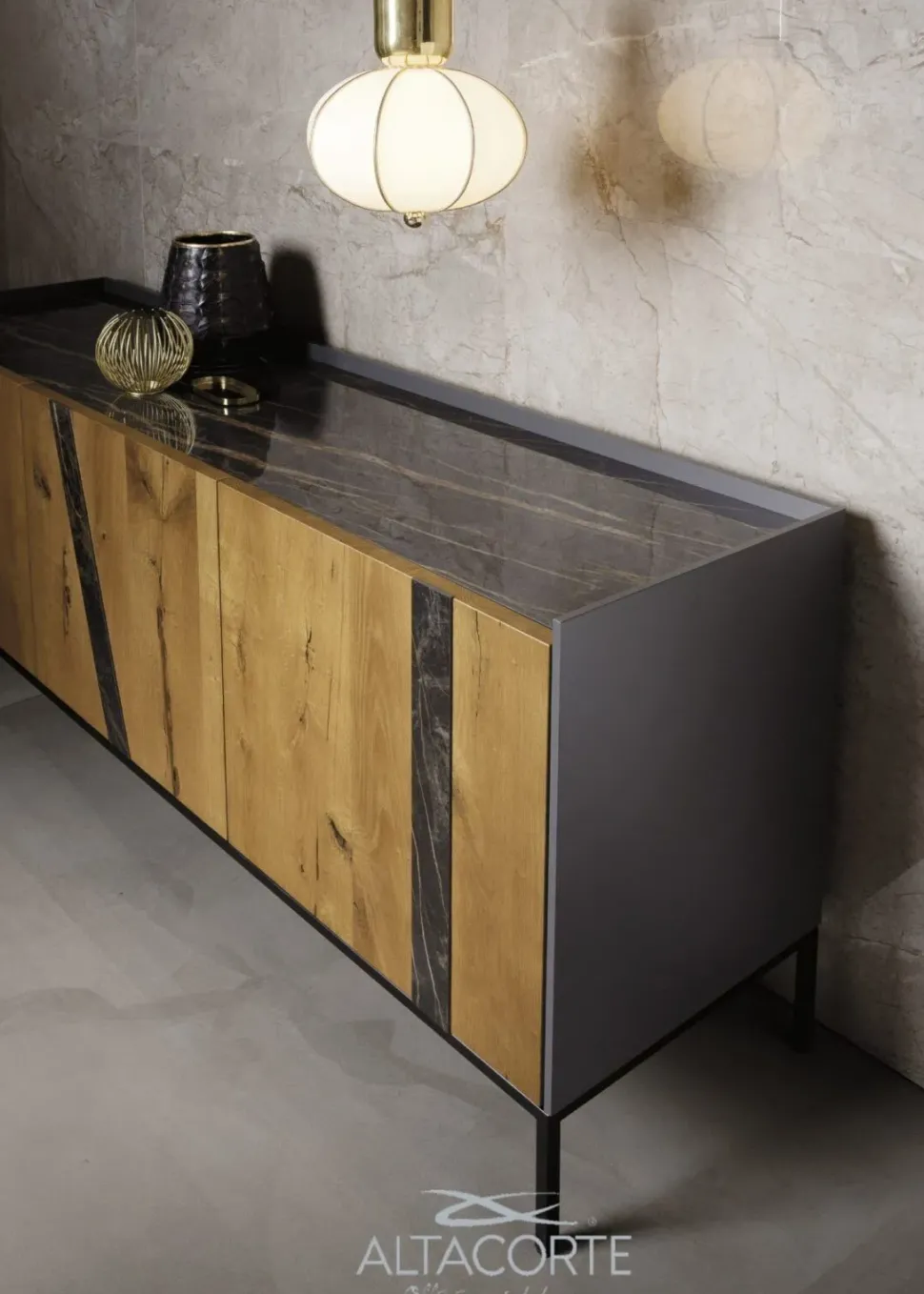 Forme decise e materiali di qualità: scopri la madia in legno qui visibile e potrai impreziosire la zona giorno.