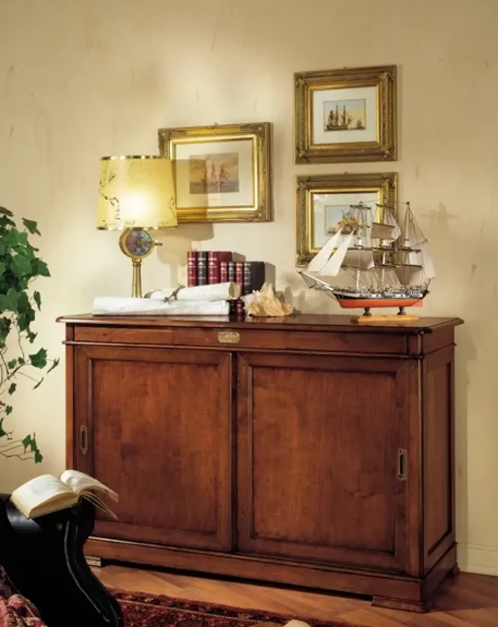 I mobili ed elementi accessori per il living consentono di customizzare lo spazio creando particolari atmosfere: se desideri ricreare ambientazioni classiche, la madia nell’immagine è l’ideale.