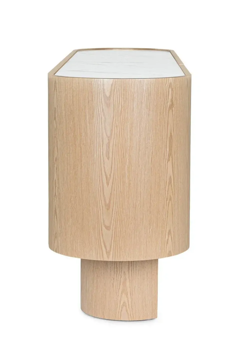 STRUTTURA IN MDF IMPIALLACCIATO LEGNO DI QUERCIA, PIANO IN PIETRA SINTERIZZATA (PIETRA NATURALE LAVORATA AD ELEVATE TEMPERATURE).