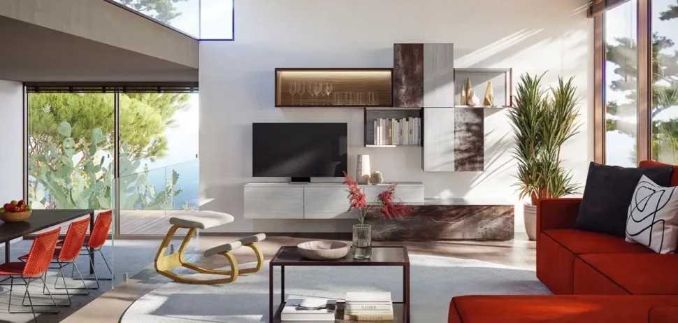 Linee decise e uno stile unico contraddistinguono questa composizione per il living, rendendola ideale per completare uno spazio in stile moderno.