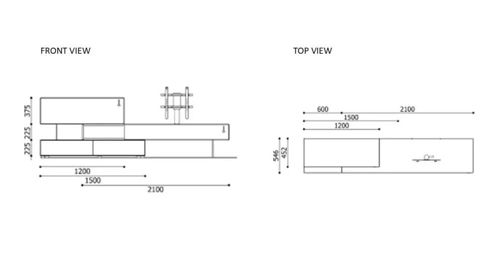 - Quella intermedia è una base che scarica a terra con il piedino in metacrilato trasparente ed è composta da un vano a giorno ed un anta con apertura a ribalta a sx. Inoltre ospita la componente Vesa , grazie alla quale è possibile (tramite l aggiunta di una staffa per tv) montare il proprio televisore e guardarlo da diverse angolazioni. La finitura è in laccato opaco grigio corda. Misure: l.210 h.22,5 e p.54,6 cm