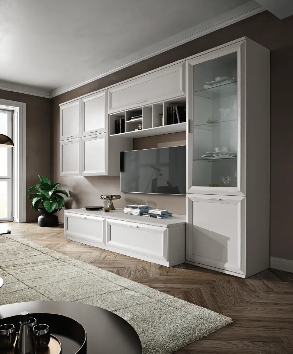 Forme decise e un design unico contraddistinguono questa composizione per il soggiorno, rendendola ideale per impreziosire uno spazio in stile moderni.