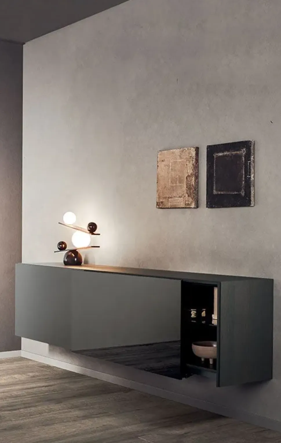 Arreda il living rendendolo dinamico e operativo: se desideri un mobile sospeso, la madia nell’immagine fa al caso tuo.