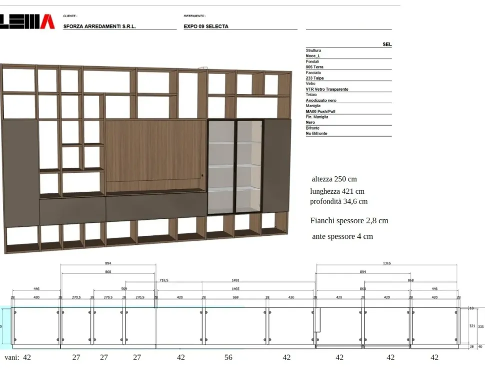 Parete attrezzata di grande qualità in offerta outlet nel nostro outlet, trasporto incluso entro 100 Km per quest’offerta.