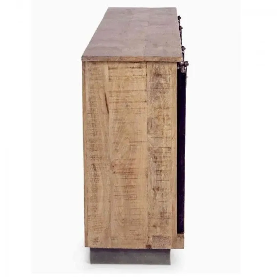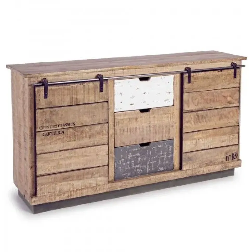 La Credenza Tudor 2A-3C ha uno stile industriale e molto originale, e si caratterizza per i frontali dei cassetti centrali, dei quali uno è Bianco anticato, l’altro è Grigio anticato e il terzo è in legno Naturale. Le due ante laterali invece sono scorrevoli e hanno un sistema di movimentazione in metallo. La Credenza Tudor è perfetta per essere inserita nella zona living di una casa arredata in stile industriale e metropolitano, in salotto, soggiorno e open space.