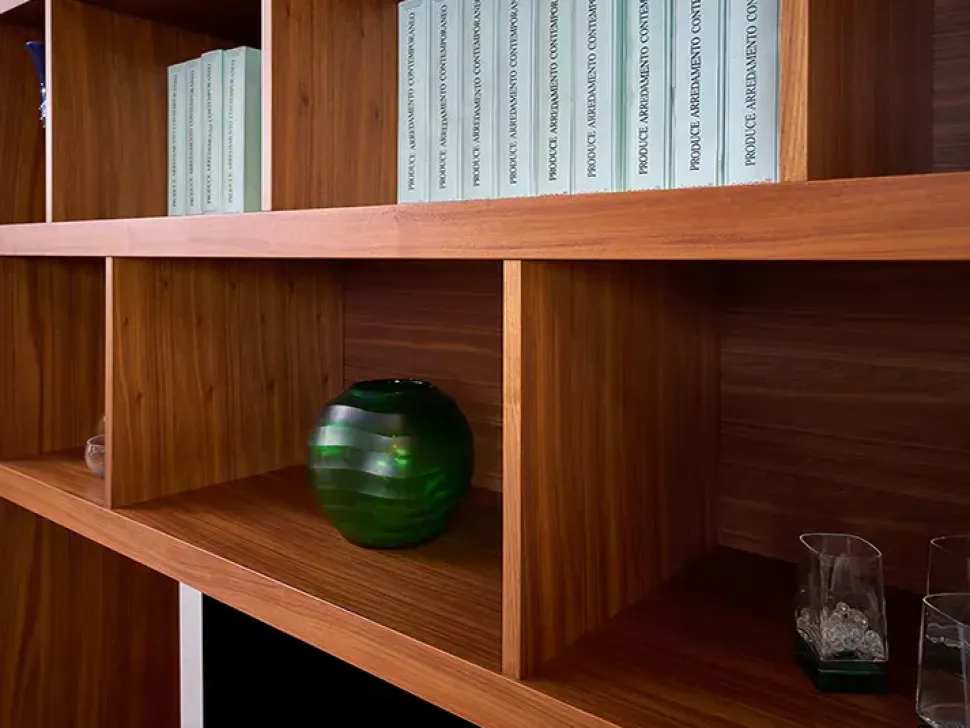 Nella fotografia è ben visibile il legno con cui questa parete attrezzata è stata costruita: la pluriennale professionalità Valentini garantisce finiture sempre resistenti e belli.