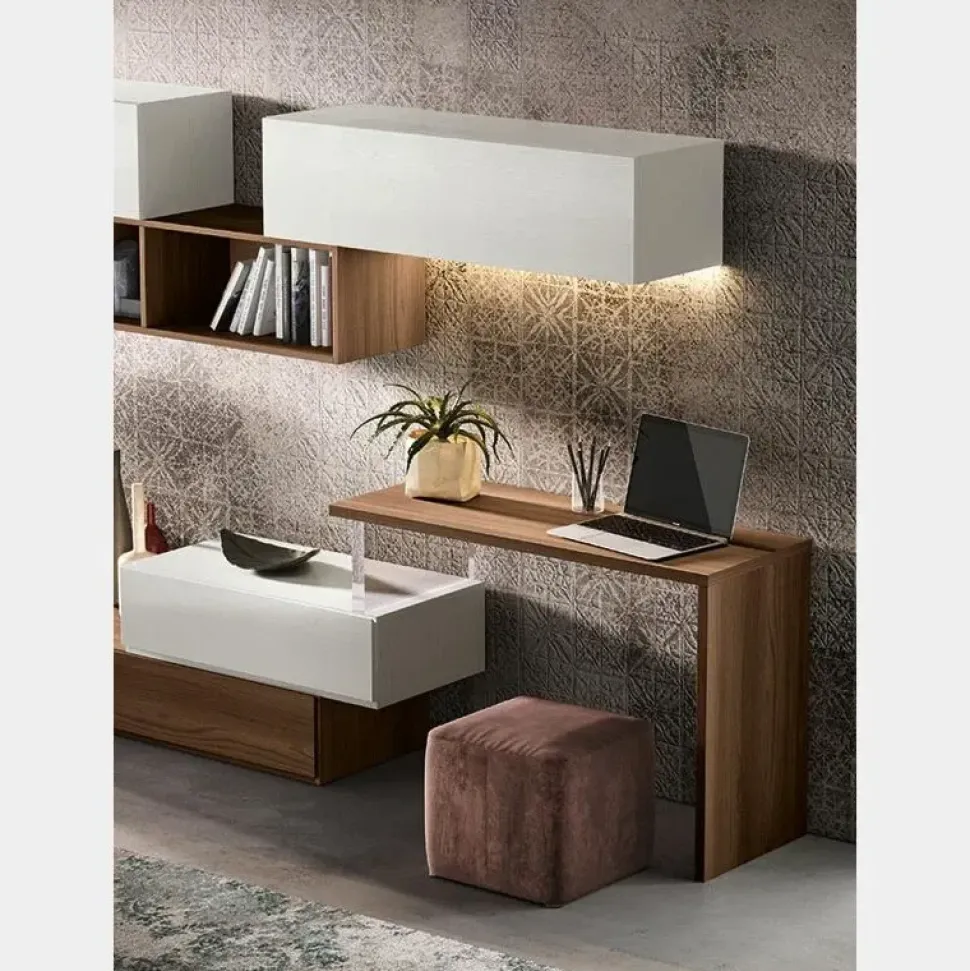 Per arricchire un soggiorno moderne scegli una parete attrezzata che mantenga una certa coerenza di stile, come questo modello 308 a prezzo ribassato.