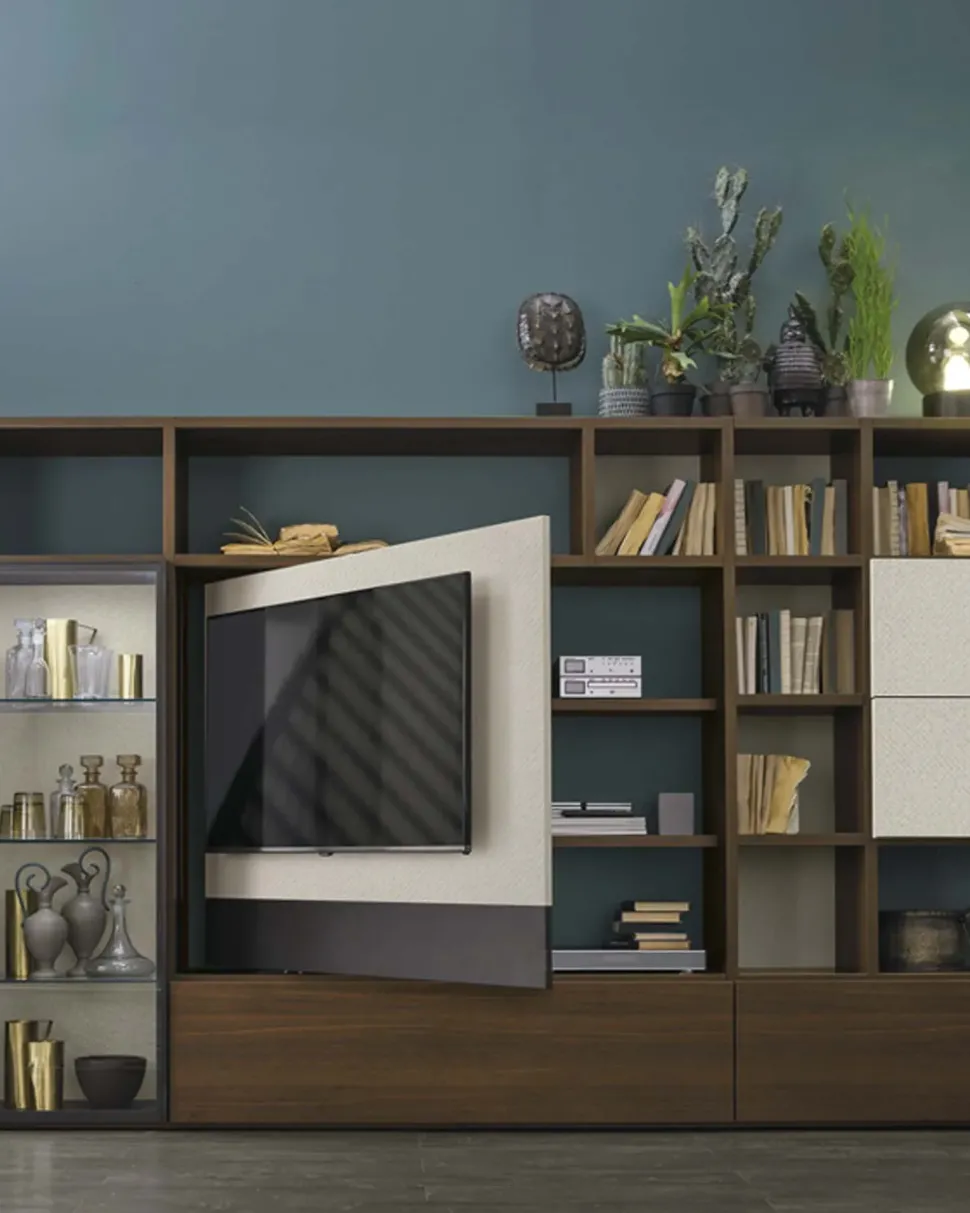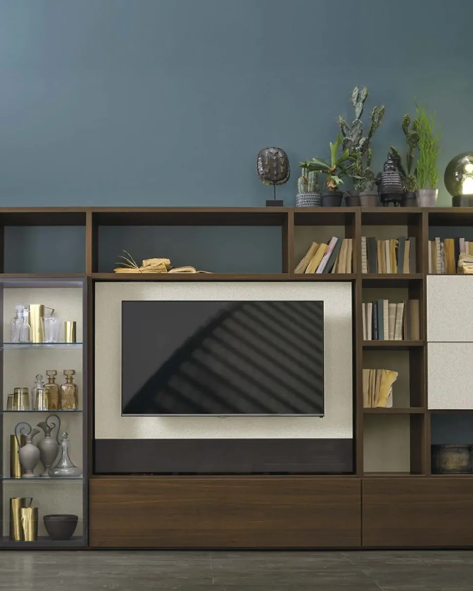 - I complementi d’arredo per il living, tra cui anche un tipo di parete attrezzata come questo modello A117, sono fondamentali sia esteticamente che per quanto concerne la funzionalità, poiché combinano le doti di praticità e design dell’ambiente: un parete attrezzata è costantemente utilizzabile come una superficie di appoggio per molteplici oggetti.