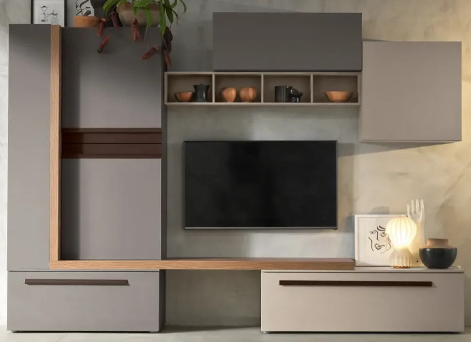 Per il tuo soggiorno abbiamo pensato ad una collezione di mobili e oggetti accessori in laminato opaco, come la parete attrezzata Composizione 15 in offerta, ideale per coniugare doti di funzionalità e stile nel tuo soggiorno.