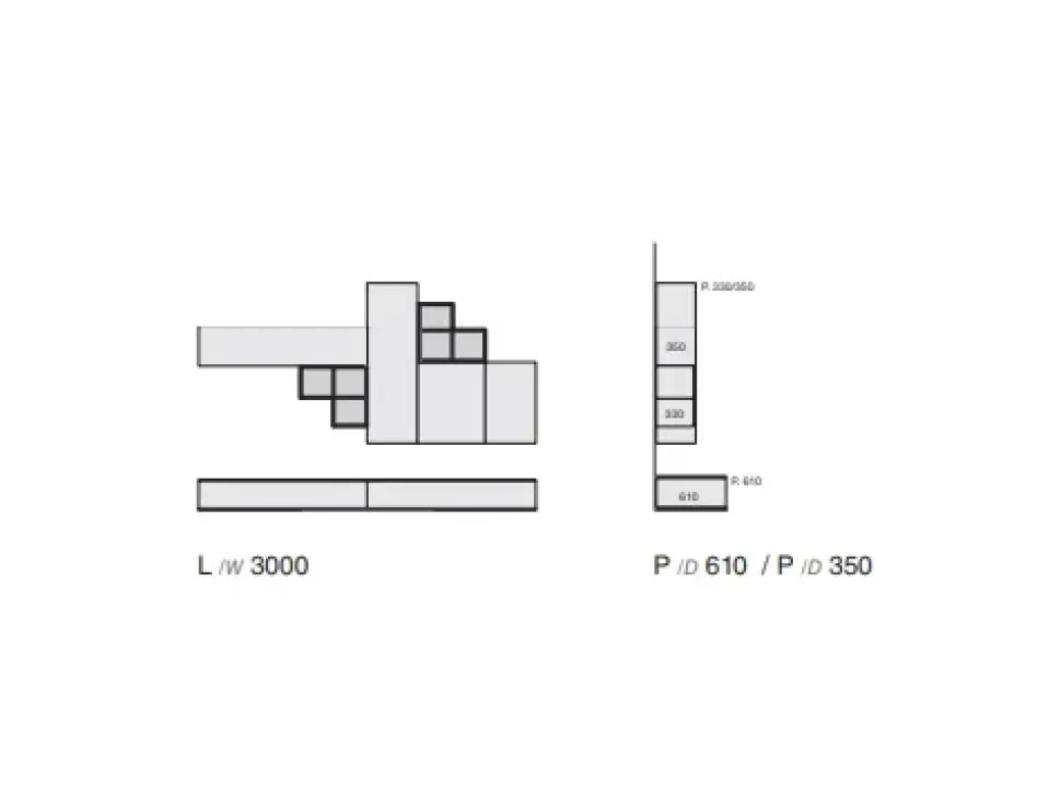 - La larghezza della composizione qui presente, che va da 251 a 300 cm, è tale da rendere questo modello idoneo ad essere posizionato in locali di diverse volumetrie e configurazioni, per valorizzare il living in una moltitudine di risultati estetici.