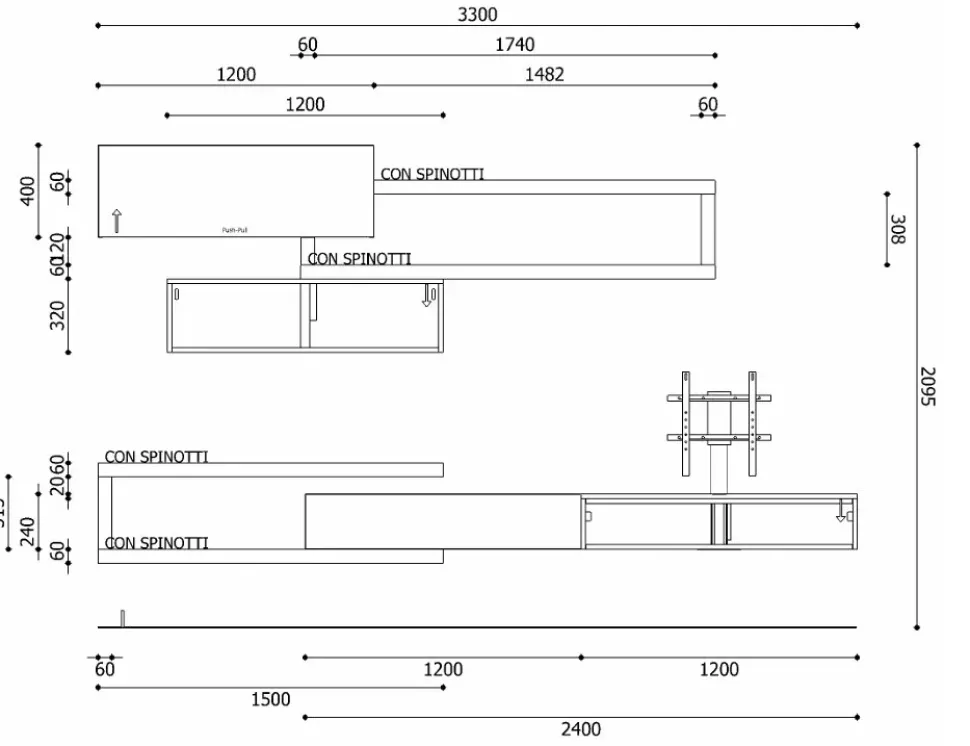 Scheda tecnica della parete attrezzata Lampo