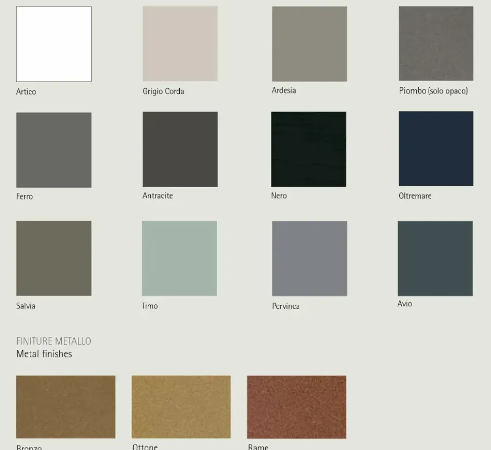 Nella base inferiore i contenitori LAMPO sono laccati Canapa opaco e pianale spessore 60 mm in Canapa opaco.