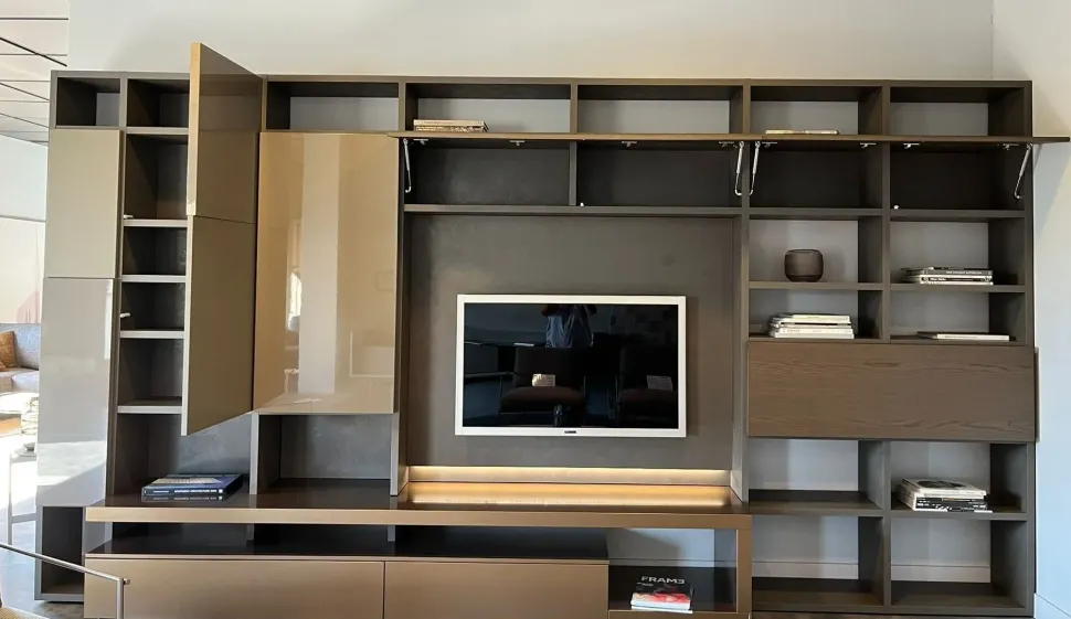 - Per impreziosire un living moderni scegli una parete attrezzata che mantenga una certa idea di stile, come questo modello Libreria modo a prezzo scontato.