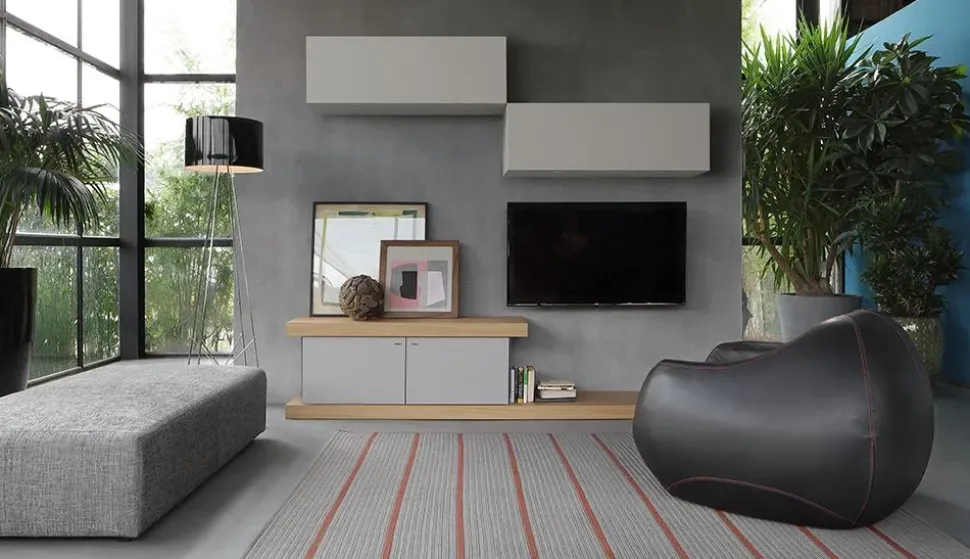 Linee decise e uno stile unico contraddistinguono questa composizione per la zona giorno, rendendola ideale per valorizzare uno spazio in stile moderno.