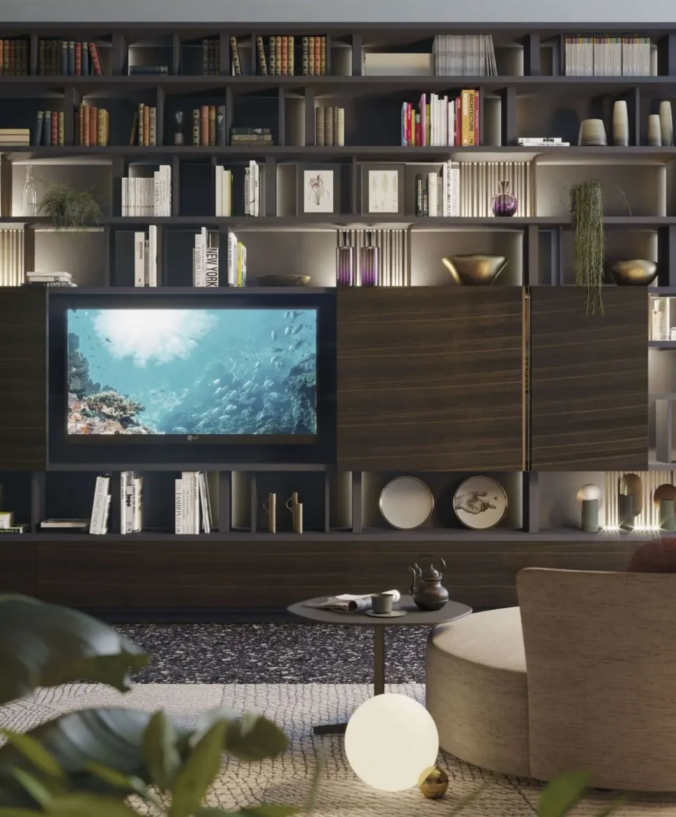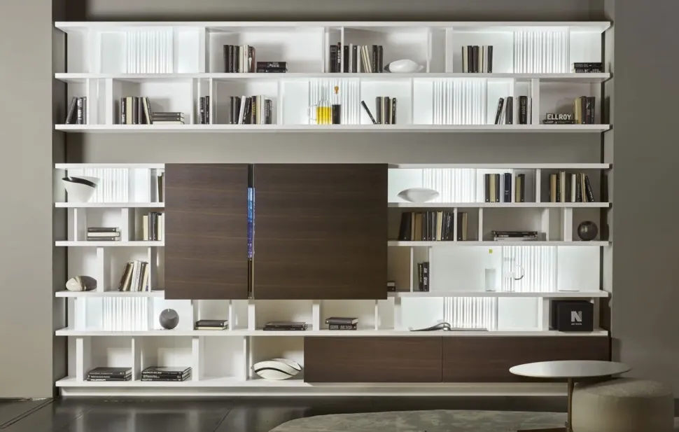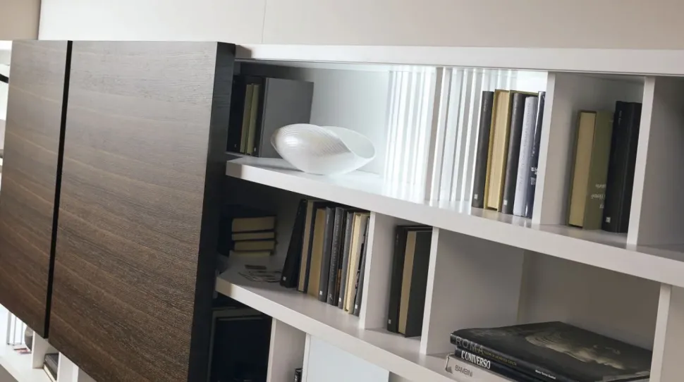 Sono molteplici le soluzioni componibili di ” LINEA IN ARREDAMENTI ” dal nuovo design e finiture di colori vari per arredare ogni ambiente e renderlo accogliente e armonioso. Un mobile libreria che si integra in ogni ambiente, particolare la predisposizione del vano per inserimento TV, nascosto da 2 antine Della stessa collezione sono disponibili: – tavoli fissi e allungabili – sedie – credenze – madie – soggiorni completi E’ possibile modificare: – misure e componibilità della composizione – finiture con colori diversi – realizzazione anche “su misura” Scheda informativa del prodotto di qualità MADE IN ITALY – struttura in legno impiallacciato con lastra di legno – laccatura opaca SETASIL antigraffio