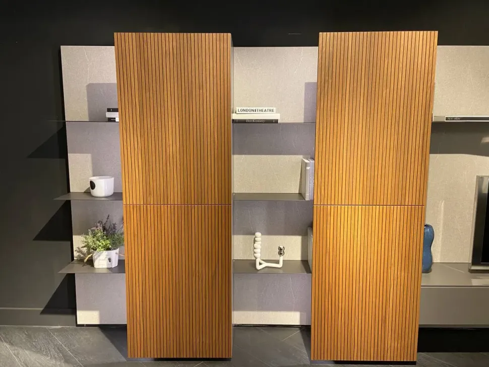 In foto è ben visibile il melamminico con cui questa parete attrezzata è stata realizzata: la pluriennale competenza Alf Da Fre assicura materiali sempre resistenti e belli.
