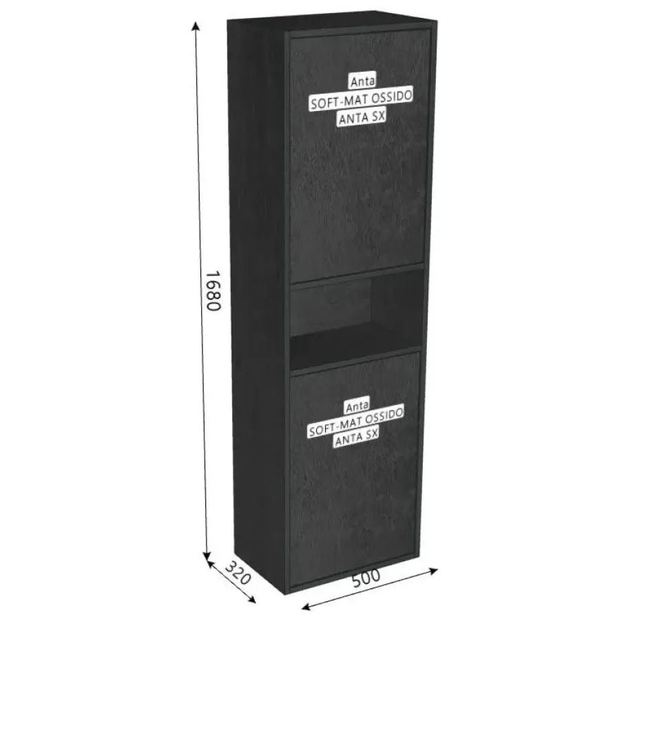 Mobile Colonna pensile di altezza cm.168 con un vano a giorno e n.2 ante con apertura PULL-OUT verso sinistra (cerniere a sinistra).