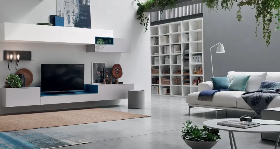 - Forme decise e uno stile unico contraddistinguono questa composizione per la zona giorno, rendendola ideale per valorizzare uno spazio in stile moderni.